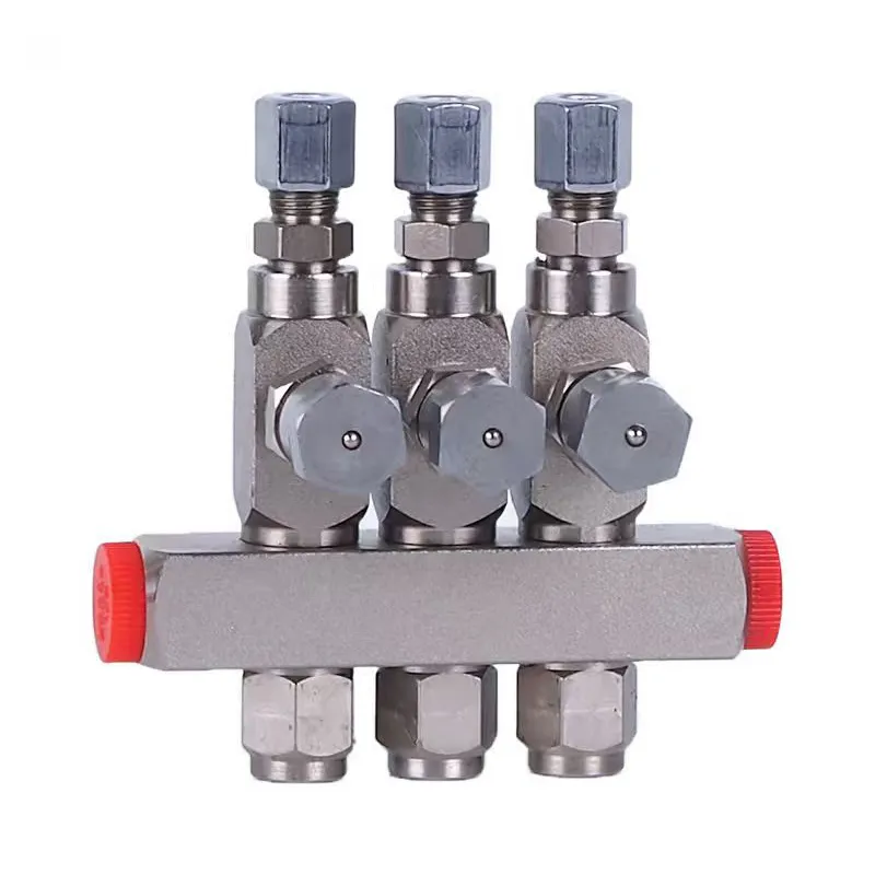 VL-32计量装置有不同的型号:从一个到四个出口。安装在分油块上的每个计量装置都可以轻松更换或检查,无需拆卸设备或操作配件和油管。